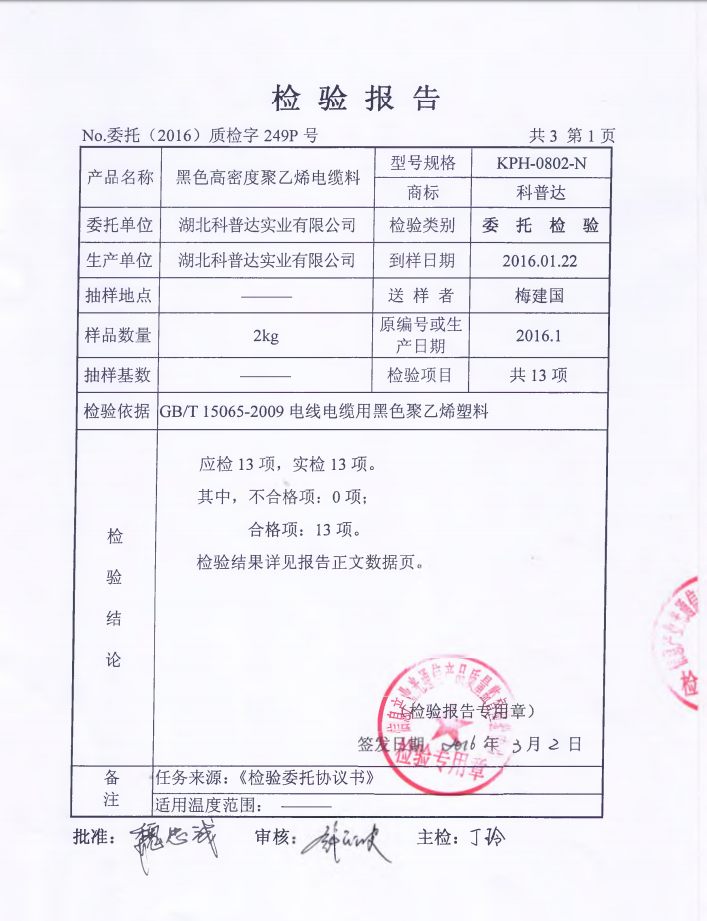 上一篇:2016年高密度聚乙烯護(hù)套料檢測報告(KPH-0802)